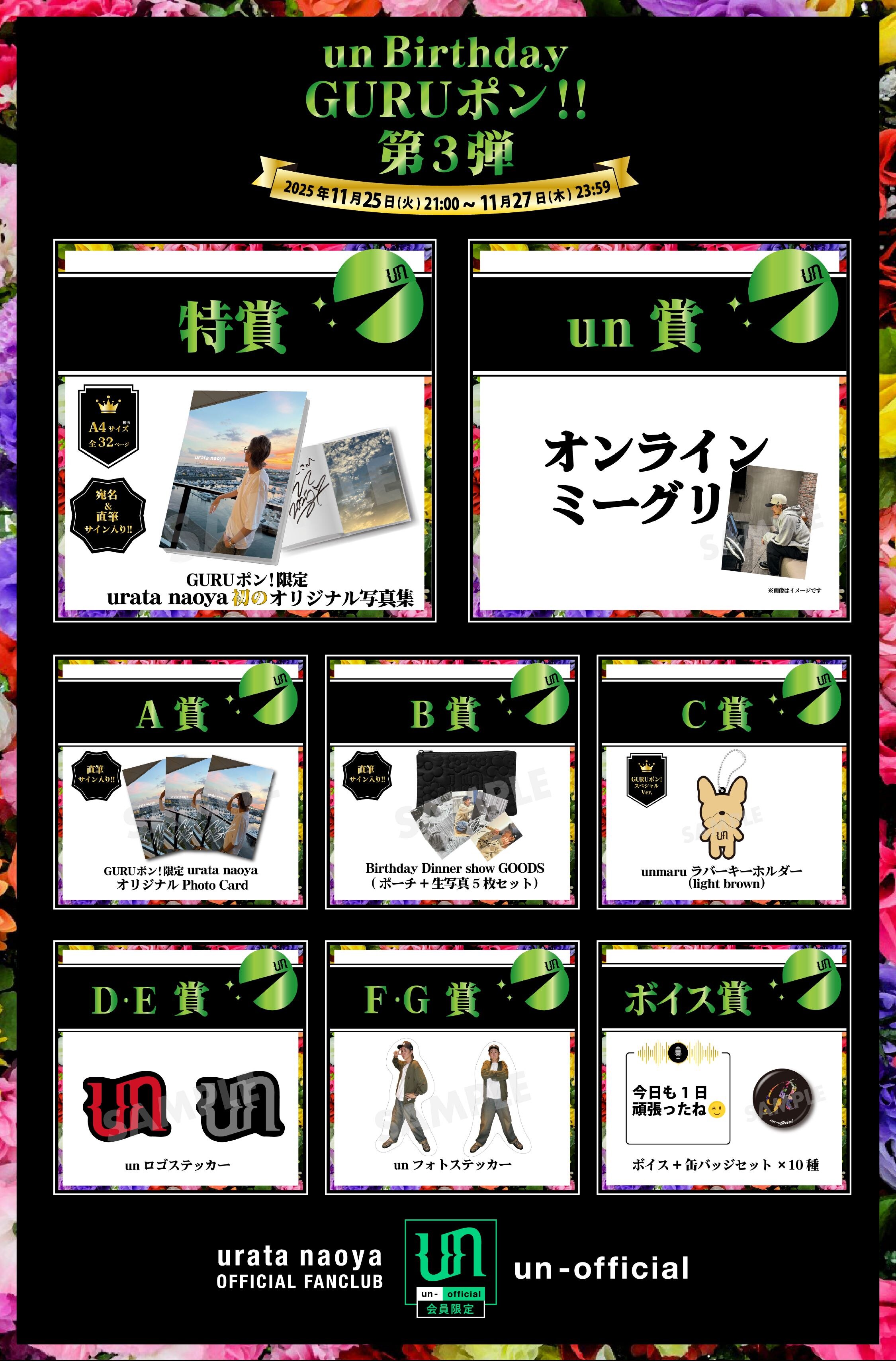 ファンクラブ会員限定オンラインくじ「un Birthday GURUポン!」第3弾の販売のお知らせです!